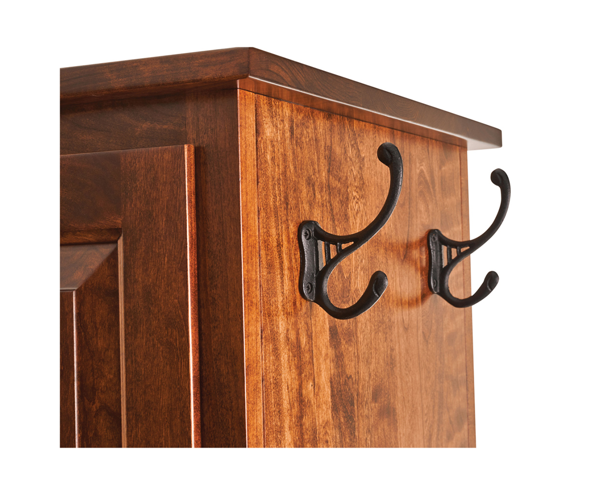 • Small hooks behind door